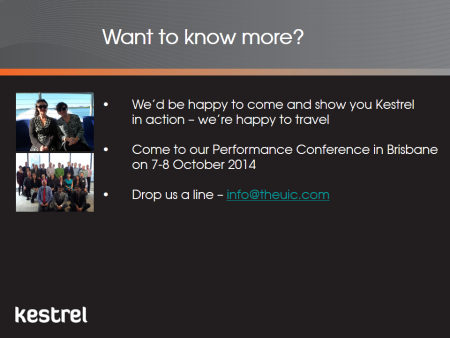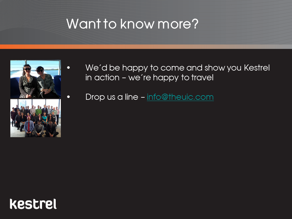 For more information or to arrange a no obligation demonstration, contact us or have a look at the Kestrel Fact Sheets.